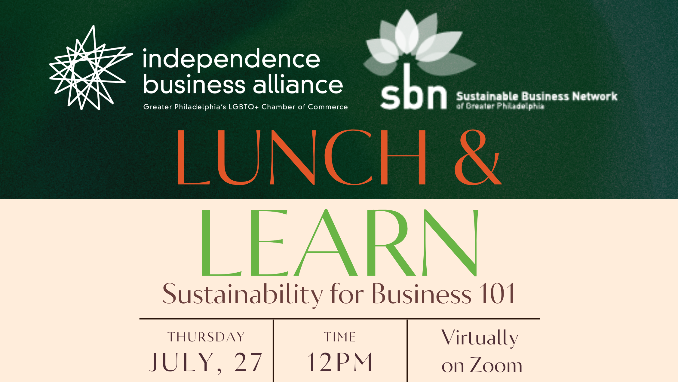 Join us on Thursday, July 27th at noon for a virtual Lunch and Learn with an expert on the subject, Devi Ramkissoon, Executive Director of the Sustainable Business Network of Greater Philadelphia. Our program will guide us through what sustainability means for your business and offer practical steps to guide your business in that direction. Sign up at the link below. Zoom link will be provided once registration is complete.